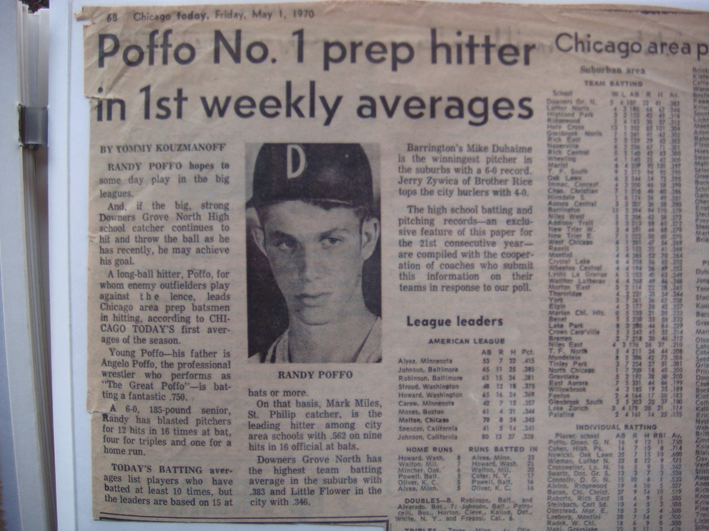 By his senior year, he was in a dog fight for the city batting title with this guy, Randy Poffo. If you look just to the right of the picture of Poffo, you can see under "individual batting", they are #1 and #2.