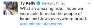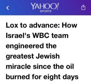 We did not a have a sense of the impact we were having in Israel and in Jewish communities around the world. We were in our bubble, in meetings and practices, getting ready for the games, and thought we were just doing what we should be doing, winning. But after the games, there were hundreds of messages from friends and family and total strangers. And the headlines were out of control. Check this one on Yahoo Sports…